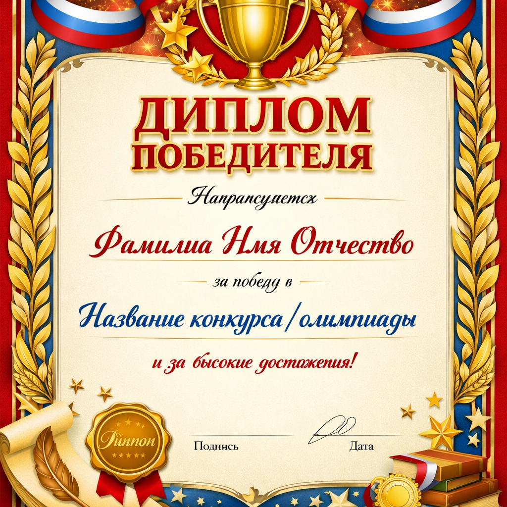 Диплом победителя, созданный в от нейросети Chat gpt image 1.5