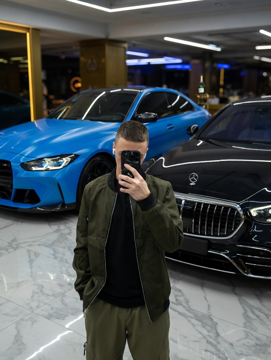 Портрет с люксовыми машинами от нейросети Grok Imagine