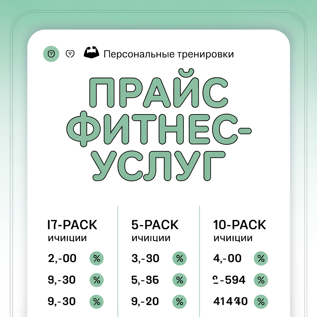 Сделай прайс лист для фитнес тренера по этим настройкам
