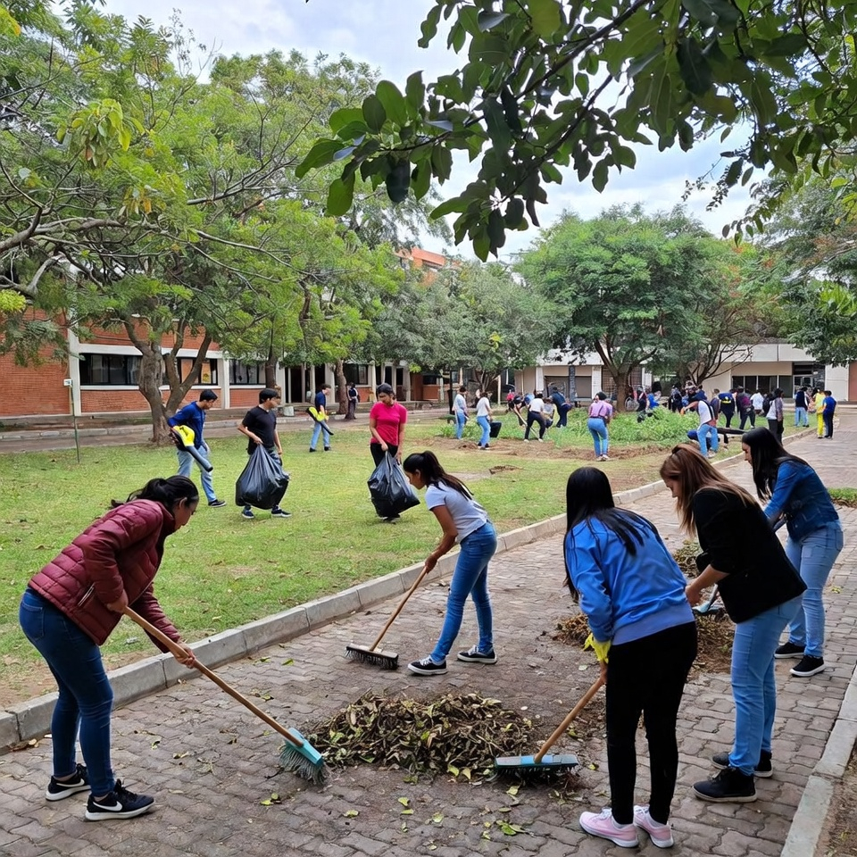 Сотрудники школы на субботнике убирают территорию образовательного учреждения