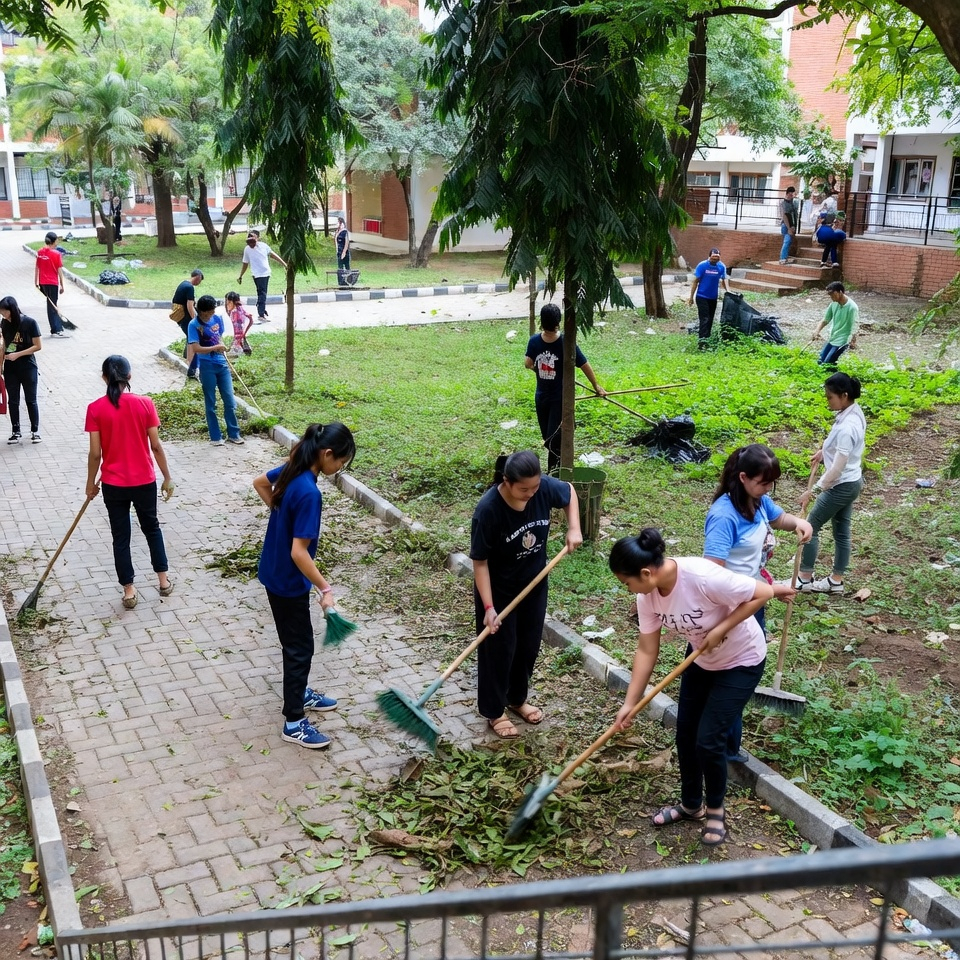 Уборка территории школы: генерация в Grok Imagine
